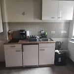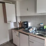 Ferienwohnung In Der Schorfheide has a fully furnished kitchen that includes a toaster and an oven. The accommodation opens onto a terrace.